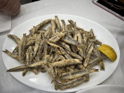 Read moreFuimos porque habíamos oído hablar muy bien de este sitio. El salón es pequeño y muy ruidoso. Al entrar nos atendieron muy bien; pedimos la bebida y miramos la carta. Pedimos: gambas, choco, boquerones fritos y rosada. Primero las gambas, se notaba que eran frescas, pero muy, muy sosas; a continuación una de chocos, la ración muy escasa y más patas que cuerpo carnoso (luego pusieron otra en la mesa de al lado y tenían mucha mejor pinta). Hasta que nos sirvieron el siguiente plato se nos hizo eterno, demasiado lentos, reclamamos un par de veces y nos dijeron que estaban llegando, pero nada de nada. Por fin llegaron los boquerones fritos, estaban bien servidos y muy buenos, a continuación una de rosada que para mí estaba demasiado hecha, por lo que no estaba jugosa. Luego pedimos un plato de almejas que tampoco nos gustó y por último una concha fina para cada uno que al echarle el limón por encima, ni se inmutaron, aunque tenían buen sabor. Salimos a 21€ por persona, lo que no está mal,...