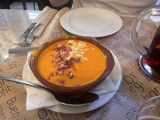 Read moreWe went on Friday 9th December at lunch wanting to try the menu del dia which is supposed to be served Monday to Friday (except holidays) but were told that we couldn’t have it because it was a holiday (it wasn’t). I’m certain that our waiter was the one mentioned in other reviews as being rude and surly…..which I don’t really care about as long as the food is good but overall it wasn’t. The salmorejo was tasty but the merluza was dry and flavourless, pork chops were fine but not worth the price when not part of the menu for dia. Perhaps it’s worth going if you’re lucky enough to get a different waiter or if you’re not a tourist which is a shame given all the other...