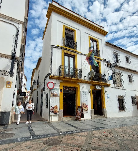 Very tasty puff pastry pies, and despite the amazing location, being right in front of the Mezquita, the quality and the taste of the pies themselves doesn’t suffer at all. I got Manolas for take out the night before 4 nights in a row, and would have them the following day - they maintained their crunch and the dough was perfectly flaky and super nice. Really great breakfast, even after they spend a night in your fridge - either re-heated, or just left at room temp to warm up on the outside, with the filling still slightly cold. I tried the chicken kebab filling, the rabo de toro, and the croquetas de jamón filling. I especially recommend the chicken one. I had 3 this morning on my trip out of Córdoba, and truth be told I’m going to miss them. Delicious pastry. Gorgeous location, if unlike me, you’re going to get them warmed and eat them right outside, and not on the next day. The Mezquita is truly beautiful once the sun almost sets, and the bronze doors start glowing...