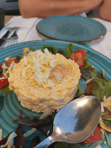 Read moreFuimos a comer 4 personas. La comida toda estupenda, pedimos bastantes platos para probar, y todo estaba rico. Ensaladilla de gambas, muy buena y tenia bastantes gambas. Delicias de pollo, estaban ricas y muy tiernas, de acompañamiento venían con patatas fritas caseras. Almejas, eran grandes y estaban ricas, sin embargo le daría un vuelta a la salsita de acompañamiento. Boquerones al limón, muy ricos estaban estupendamente bien hechos. Patatas de pulpo a la brasa, si bien me la esperaba algo más grande, el sabor y lo bien hecha que estaba, junto con el acompañamiento, estaba genial quizás lo más bueno de la comida junto con el postre. Choco frito, estaba rico, un poco duro, pero también bueno. Flamenquín de carne, la verdad es que es que estaba bastante seco, rico de sabor, pero algo seco. De postre tomamos una torrija para compartir; estaba riquísima, el helado también estaba muy rico. Sin duda un lugar muy recomendable para ir, y para volver. El personal muy atento, si bien, si tuviera que poner un pero…. La comida tardó bastante y fue un poco lento, pero quizás tan solo fue ese pero en...