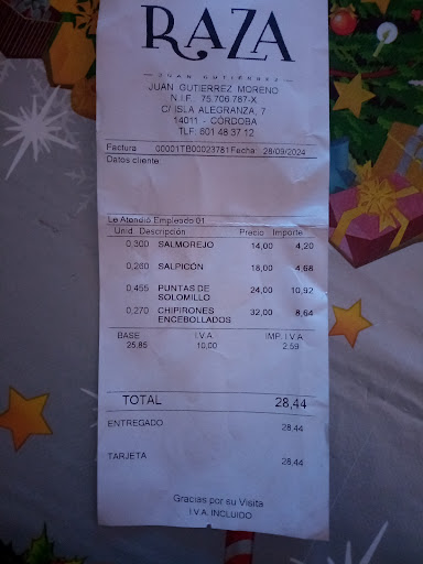 Read moreHa pasado muchas veces por delante y hoy ha sido la primera vez que lo he visto. (Poco indicado, si no estás en la puerta no lo ves). Tiene una variedad amplia de platos. Sin embargo son platos algo caros para ser para llevar (precio de restaurante) y los venden al peso, no por raciones. He cogido con mi pareja: salmorejo (sin ajo, poco tomate y mucho pan) salpicón de marisco y aguacate (mucho caldo y aceite) punta de solomillo (buena de sabor y bastantes granos de pimienta) chipirones en salsa (bien, con un punto picante). Total de la compra: 28e y con hambre
