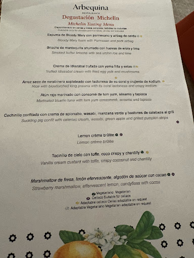 We started off with a cold bloody mary foam, nothing wrong with it, nothing special, tomato and wodka flavours. On the menu it said „pork airbag“ - no idea what that was, couldnt find it or taste it. On the same plate came the second course, a toasted brioche with a tiny sliver of cream on top of it. This was supposed to be the sea urchin roe, but lacked any kind of its normally sweet and subtle sea flavour. Both of the dishes were not horrible, but not great either. We continued with a truffeled cheese cream with mushrooms and egg yolk. Nice, but very rich. Also not great, not horrible either. The next course was a carabinero with rice. The carabinero was nice, the rice was also okay. Decent course but again nothing i would order again. Next course was tuna with tom yum water. The tuna was okay, a little to cooked, the tom yum essence was watery and carried little flavour. The sesame was not toasted and added little flavour. There were tapioca pearls on top of the fish that did not have any taste. For fine dining no ingredient should be on the dish that does not contribute to taste, especially when the rest of the dish is also bland. The next course was one of the worst dishes I had in years. My piece of suckling pig was not tender meat, but contained a piece of either liver or kidney, cartilage and was very tough. This should never happen. The rest of the plate was ice cold, a bitter jus, cold celery cream, no idea where the wasabi was supposed to be, ice cold roasted pumpkin and raw apple pieces with still a piece of the apple core and peel on them. Then came three desserts, a lemon Creme brulee that was unremarkable, a very sweet custard with toffee and the last let down of the menu: „strawberry marshmellow with lemon effervescent and cocoa candyfloss“. This course was so bad, it was almost funny. No candy floss or cocoa in sight. It looked like a toddler had smashed some biscuit cake, plunged a marshmellow and a lemon drop on in and decorated with flowers from the garden. The marshmellow had no taste and the lemon drops were just standard supermarket lemon drops. How this can be titled as a Michelin Menu or how this restaurant could end up in the guide Michelin is a riddle to me. Maybe their normal a la carte food is better, but the tasting menu tries very hard, but lacks any kind of understanding or flavours or gourmet cuisine. Dishes desperately need refinement in taste (acidity!), plates need to be preheated for hot dishes and the concept should be revised. We gave our feedback when checking out and received a small discount on the menu price (70€ pP). However, I would honestly not have this menu again if someone...