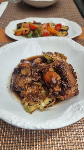 Read moreTiming is everything - particularly when afternoon siesta is imminent. With this added pressure and little success as we made our way around various sites of interest during our day trip to Cordoba, we resorted to the tried and trusty five star hotel restaurant. A google search brought us to Palacio del Bailio and Restaurante Arbequina! In spite of an initial hint of “are you lost?” (we were after all dressed for sightseeing), our maître d’ quickly redeemed herself and ensured we felt welcome and valued - including my coeliac requirements which I was happy to note were not to derail my dining experience on this occasion. Artisan breads and a pretty darned good GF alternative served with truly noble olive oil and balsamic, were to keep us going while waiting for our mains. The quite delicious Pedro Ximénez white while not strictly speaking ideal for our main course, was very much to my liking and perfectly chilled! On my glowing recommendation, we both opted for “Rabo de toro tradicionale alcachofas y patatas baby” (Traditional oxtail stew with artichokes and baby potatoes) and a shared generous selection of char grilled vegetables. Well… not since my dear old mum cooked this meal for my husband some decades back, was I this joyful with the result! We’ve been treated to some pretty exceptional “cheeks” these past weeks - both pork and beef - but oh my god… the humble and frequently overlooked “tail end” hands down takes out the best on tour award! Clearly that “Michelin ‘25” was deservedly bestowed. But to dessert then. My cousin opted for “Crumble de manzana asada, vainilla, avellanas caramelizadas y helado de mantecado” (Baked apple crumble with vanilla, caramelized hazelnuts and shortbread ice cream); while my adapted for GF “Cremoso de leche fermentada con velo de flores, crumble y helado de violetas” (Fermented milk cream with flower veil and violet crumble ice cream) suffered no discernible hardship in catering for my needs! The trail beckoned and having consumed an extremely elegant sufficiency, not even coffee could be added! Five stars from this apprentice food critic and...