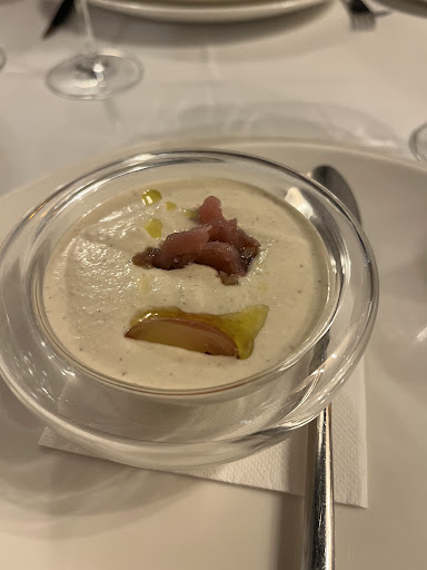 Read moreHe visitado dos veces este restaurante el cual no conocía y había pasado por la puerta varias veces si darme cuenta,no tiene grandes letreros y aunque está en un lugar concurrido y bien situado podrías pasar y no darte cuenta o quizás yo sea muy despistado ,jajaja.El sitio es elegante ,no muy grande aunque dispone de dos salones privados ,uno para unas 8 o 10 personas y otro para unas 40, la decoración moderna y elegante ,un detalle que me gustaría es un cambiador para bebés en el baño ,creo que un sitio así debería tenerlo.Bueno de la comida destaco las tostas sobre todo las de pescado ,que son cuatro variedades ,la carne madurada de la cual yo pedí entrecot y está muy rico ,las patatas quizás un poco escasas,de los postres sin duda la milhoja de frutas rojas espectacular,hacen una mayonesa de aceite de oliva que está muy rica .También comí un arroz de presa que también están muy bueno ,la mazamorra de avellanas no me sorprendió ,lo encontré un poco avinagrado con poco sabor a avellana y quizás la vi un poco escasa ,los raviolis de carrillada tampoco ,poco sabor y poca cantidad.Salvador el dueño muy atento se nota que quiere agradar y que te vayas contento ,nos invitó a un chupito y un...
