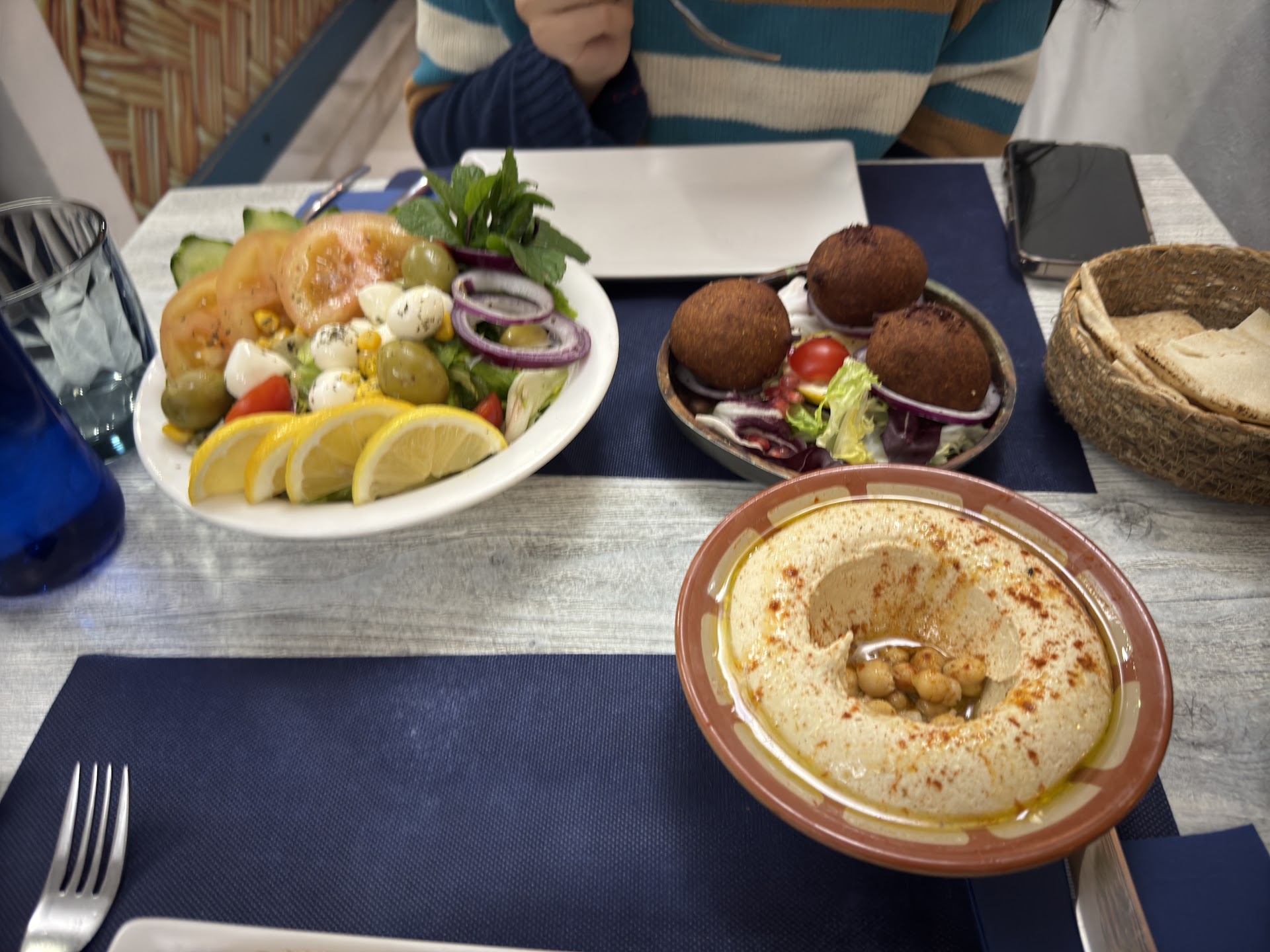 We started with the hummus, kibbe, and the Alcázar salad, all of which were incredible. The hummus was creamy and flavorful, the kibbe had the perfect texture, and the Alcázar salad was a zesty, refreshing delight.