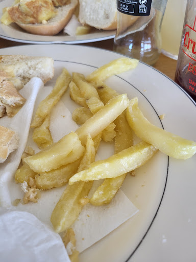 Pongo una estrella por que no puedo poner menos. De primeras entramos porque vimos que tenía un menú del día puesto a fuera en la pizarra, cuando entramos a la 13:00 nos dicen que para comer solo bocadillo y platos combinados. Elegimos dos bocadillos de tortilla , uno de jamón y una hamburguesa. Nos llegan los bocadillos todos con patatas crudas... ( que obviamente no me las comí ni yo ni ninguno) pero lo peor es cuando mi pareja se encuentra su bocadillos de jamón con moho en lo que se lo decimos al camarero, quita el "trozo" que contiene el moho y nos dice que le ha dicho el cocinero que eso es sal...mi pareja dijo que ese bocadillo no lo quería y nos lo cambió por otro de tortilla dándonos a entender que no nos devolvía el dinero, por decir algo bueno la tortilla estaba rica. Pero eso no queda aquí...mi madre le pide a uno de los camareros que quiere dos pulseras que tiene en el expositor en el que este le dice que se lo diga al de la barra, pues ella se lo dice al de la barra del que viene y grita a mi madre ( estaba yo delante) VENGA VENGA! mi madre le dice pero no hace falta que se ponga así... Falta de respeto a una clienta, si no tienen personal o no quiere salir a abrir los expositores que los quiten. Vamos una vergüenza, solemos pasar mucho por esta carretera pero a este lugar a sido la primera vez y desde...