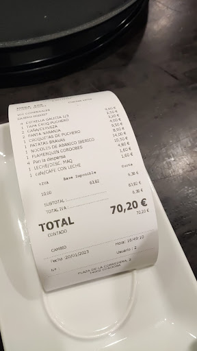 Read moreReally great evening meal,. The staff were great, the restaurant looked very modern, wasn't a big fan of QR code based menus, but they worked and translated menu well, food was tasty, with good sized portions not too big, not too small, try the tuna and rocket salad ( I know that sounds really dull) but it was just great, we had it as a shared starter even though it was a main, wine choices were good, the food was modern Spanish, maybe a touch to many chips on offer as sides, but with steak and Iberian stew, hey they worked well, restaurant was lively but not loud and everyone seemed to be having a great time, didn't feel rushed as service was fast, table of three, bottle red, beer, water, shared starter, mains, deserts and coffees came in at 40 euros a head...