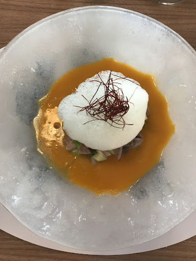 Read moreI recommend this place in Cordoba for it's exquisite menu. We tried several of the interesting, creative seafood dishes to share. The cured butterfish had a texture and flavor combination I've never had, highly enjoyable. The white almond soup had an interesting apple sorbet (but is ok to skip). They had a dish with seaweed scrambled eggs which, again, I've never had anywhere else and which paired amazingly well in terms of texture. Several dishes I wish I had space to try...