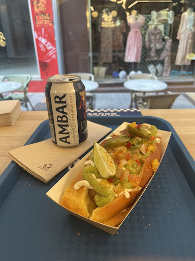 Read more⭐️⭐️⭐️⭐️⭐️ Sr. Perrito, ubicado en C. Morería 3, a un paso de la Plaza de las Tendillas, eleva el clásico perrito caliente a una experiencia gourmet urbana . El local, moderno y acogedor, permite hasta siete combinaciones distintas, todas preparadas con salchichas artesanas y pan brioche: desde el clásico hasta versiones más atrevidas con guacamole, col al ajillo, torrezno o palomitas .