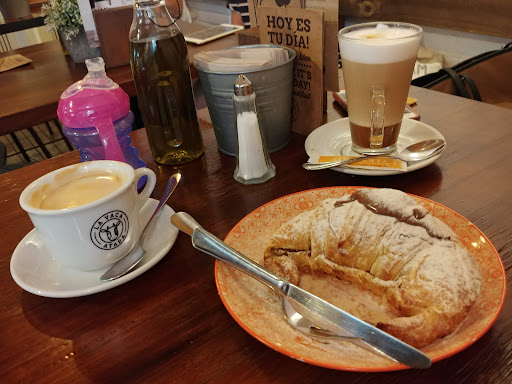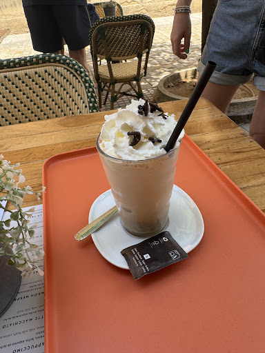 Read moreSuper cute place, open during the mid day shut down (is it even still called a siesta?) air conditioned, serving cold drinks including Piña Coladas and Daiquiris (the only cocktails), they also offer Sangria (cup or pitcher), beer and wine, and and a Starbucks menu's worth of coffee options (including Frappuccinos) they also have smoothies and a ton of tasty looking pastry options. Caution, they may still be using old menus, as we were charged .50€ more each for our Piña and Daiquiri than showing on the menu. I showed the server and she was quick to apologize and did try to refund the Euro (great service so I declined). I...