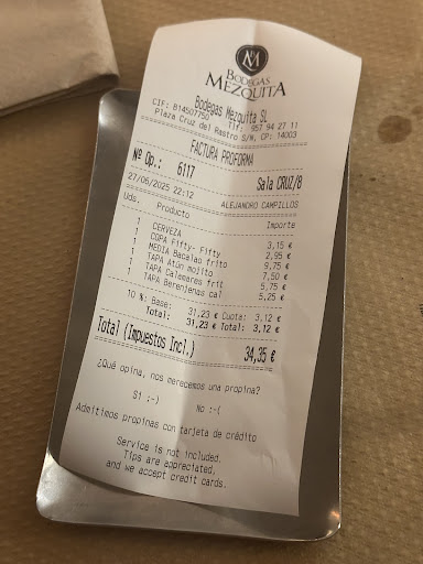 Read moreThere are, I think, three Bodegas Mezquita restaurants. My favorite is the one on Calle Cruz del Rastro: it is further away from the Mezquita, and therefore from the large volumes of night revelers :-)