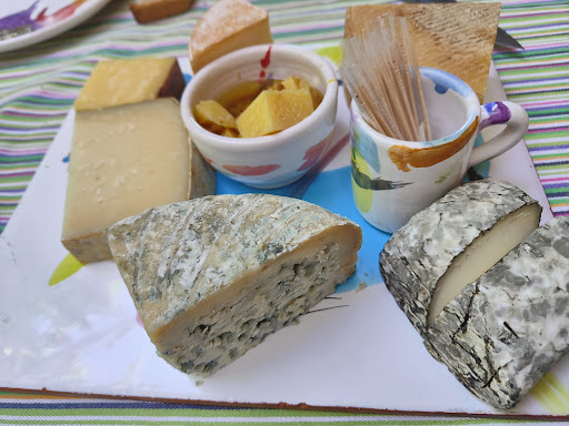 Después de la carne llega el mejor plato del menú: la tabla de quesos. Aquí la sorpresa es que te traen el queso que ha pasado por otra mesa para que tú vayas comiendo lo que quieras. Otra vez, con el afán presuntuoso de ofrecer de más tienen un queso de Ávila, otro zamorano, otro de León y un par de ellos suizos que son los únicos que tienen algo de sentido junto con el de cabra sudao de Oliva de la Frontera.