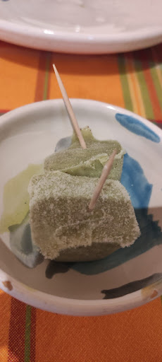 Después llegan los sorbetes para limpiar el paladar y cambiar de sabores. Son dos cubitos con un palillo. Dicen bastante del sitio.