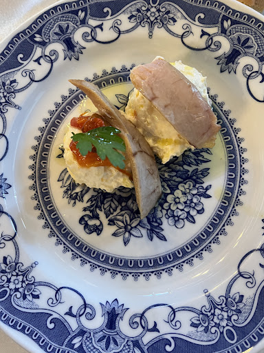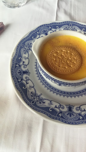COMIDA: este fue el punto que más nos decepciono ya que nos lo habian recomendado mucho. Nos decantamos por pedir el menú del dia, que era bastante básico. Entre todas las opciones que había para elegir, pedimos: gazpacho: aceptable. No fue de los mejores que haya probado, pero estaba bastante correcto. Buen sabor y buena textura, aunque sin los añadidos del pepino, pimiento, tomate o cebolla picados que suelen poner en muchos sitios y que a mi tanto me gustan. sopa de marisco: estaba buena. albóndigas: lo mejor de la comida. Tenia un sabor muy bueno y una textura bastante decente. entrecotte: sospecho que me dieron una de las peores piezas que tenían en cámara. Ya en el plato tenía mala pinta, y al partirla se confirmaron mis sospechas. De sabor, bastante regular y traía bastante ternilla que hacia que a cada corte tuviera que "operar" mi filete para quitarla. natillas: pasables. acompañamos la comida de cerveza y agua.