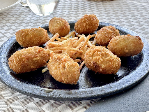 Read moreHe llegado a este sitio atraída por las reseñas del menú del día y las fotos del mismo pero lo que he visto en internet no se corresponde con lo que luego hemos comido, el menú no es tan casero ni tan abundante como se hace referencia en las reseñas. Las croquetas son congeladas del Eroski que son todo harina, la ensalada de pasta nada del otro mundo y la cantidad más o menos para un plato mediano (con esto ya nos hemos dado cuenta que las opiniones no correspondian ni en calidad ni en cantidad). Entre los primeros platos no había nada de cuchara (sopa, lentejas, etc.). Los segundos han mejorado un poco el menú, el filete de ternera era grande y las patatas caseras pero más o menos como puedes comerlo en cualquier otro bar de España, nada destacable en calidad o cantidad. El postre normal pero no había nada casero ( tarta helada, frutas en almíbar y helados, todo del supermercado y nada casero). De precio 10€ no es caro pero por ese precio se puede comer mejor en otros muchos sitios. Un sitio de paso al que no volvería a comer y que tampoco...