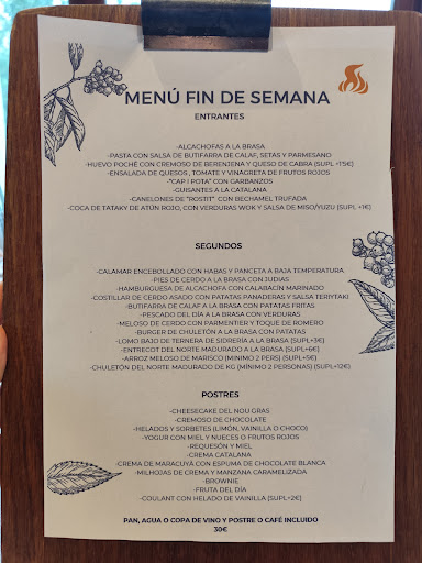 Read moreEl menú cap de setmana només és al migdia (no s’especifica enlloc que per la nit no). Considero que Cabrils té restaurants amb oferta gastronòmica/ambient per a menjar a carta molt millors que Nou Gras. A més, el servei deixa molt que desitjar, hi ha molts plats de la carta que no tenien (tenint en compte que era un dissabte nit…és de poca previsió) i si cobreu els preus que tenen per un plat de salmó, no podeu servir el peix amb ganivet de carn.