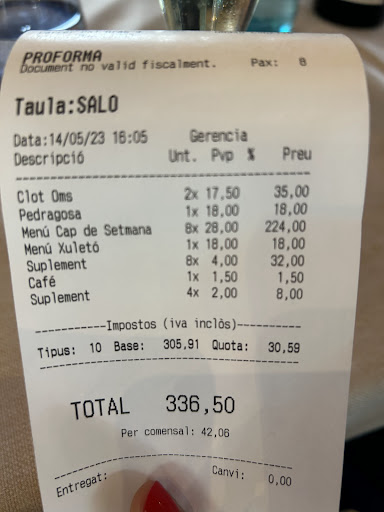 Hacía tiempo que no me trataban tan mal en un restaurante. Era la segunda visita, había estado hace 1 año y no sé que ha pasado para que hayan bajado tanto la calidad y la atención. Servicio TERRIBLE, 10 minutos para pedir bebida y luego otro rato hasta que tomaron nota. Al servir los primeros platos, con los que ya había en la mesa hicieron una pila y los dejaron en medio... Camareros sin experiencia y como pollo sin cabeza. Pedimos todos arroz y sirvieron solo a la mitad de los comensales, a la otra mitad tardaron casi 10 minutos en traerles su plato. Al llegar la cuenta, empiezan las sorpresas. Uno de los comensales pidió un 1º extra (una coca de queso, vamos, una tostada) por la que cobraron medio menú por este plato exclusivamente, 18€., que ellos tipifican como "menú chuletón" en la cuenta. La explicación fue que no estaba tipificado en la carta y que claro, "tenían" que cobrar medio menú. Parece ser que en un restaurante que también tiene carta no es posible aplicar un concepto de plato con un coste real y ajustado a lo que se sirvió. ¿entonces, si me tenían que cobrar el menú chuletón, porqué no me lo avisaron y me sirvieron también la bebida, el pan y el postre correspondientes? Ojo porque de un menú supuestamente de 28€, más de la mitad de los platos llevan recargo, y como casi todas las bebidas van a parte, la realidad es que la cuenta subió a más de 40€ por persona. Carísimo, teniendo en cuenta la calidad de la comida que sirvieron (justita) y que el servicio fue bastante deficiente. Las alcachofas que pedimos eran de todo menos recientes, y un recargo de 4€ sobre el precio del menú por plato de arroz de manitas de cerdo y 1 langostino congelado por plato va en la misma línea que cobrar la coca de queso a 18€. A lo mejor es posible no servir 1 montaña de arroz en cada plato que nadie se termina y no cobrar el recargo, porque desde luego, no lo vale. Al pedir aclaraciones sobre la cuenta, me trajeron 3 cuentas distintas porque no se aclaraban ni ellos con los suplementos de los platos, por no entrar en el tono en que se dirigió a mí la persona que vino a "explicarme" todos los recargos. Como se puede ver en el ticket, ni siquiera tuvieron la deferencia de invitar a 1 café de 1,5€ en una cuenta de casi 340€ ni ofrecer chupito de cortesía, sabiendo que además era una celebración de cumpleaños. La mesa de al lado en la misma situación que nosotros. Con el nivel gastronómico que tiene Cabrils, por este precio hay sitios de muchísimo más nivel....