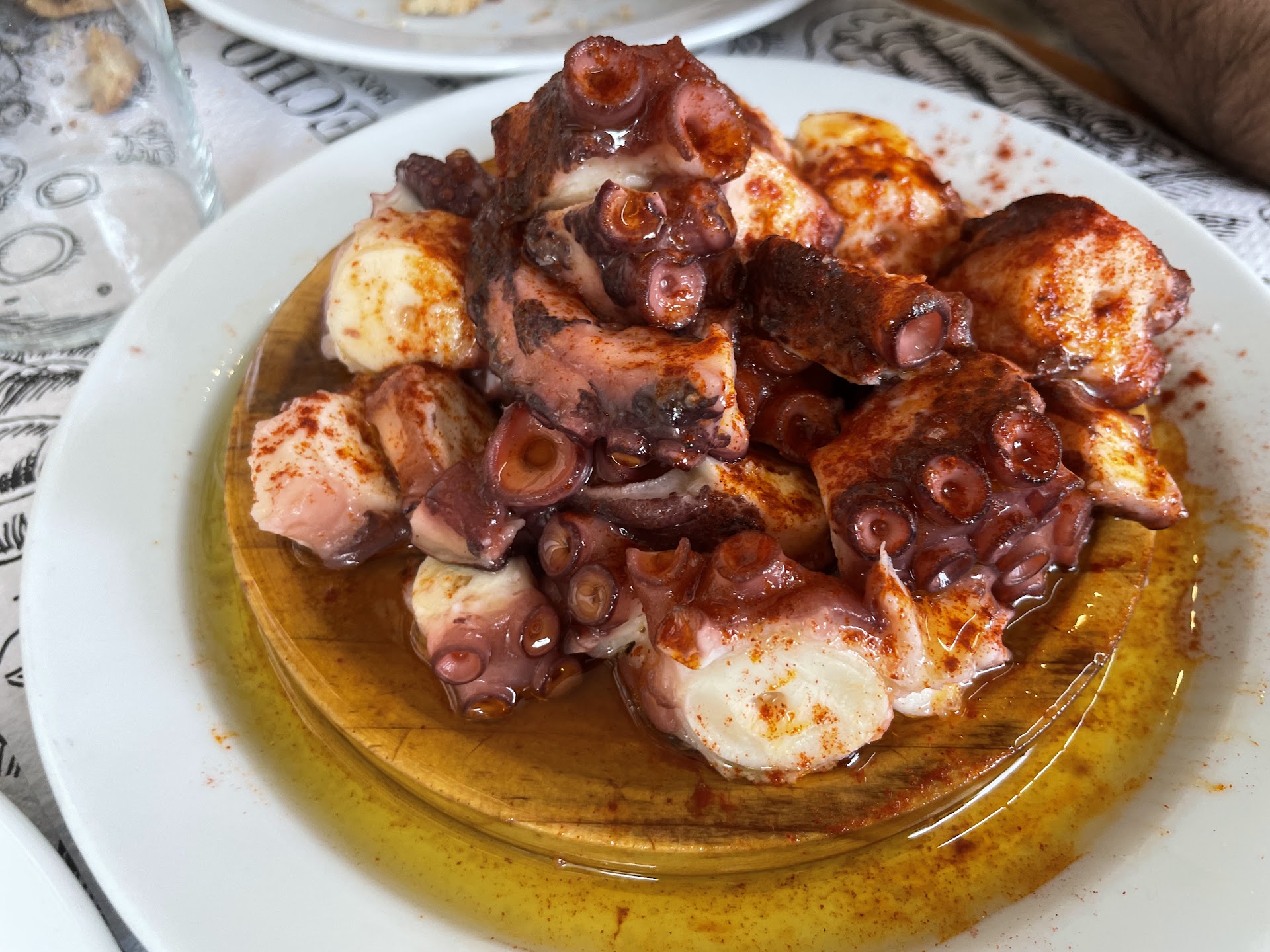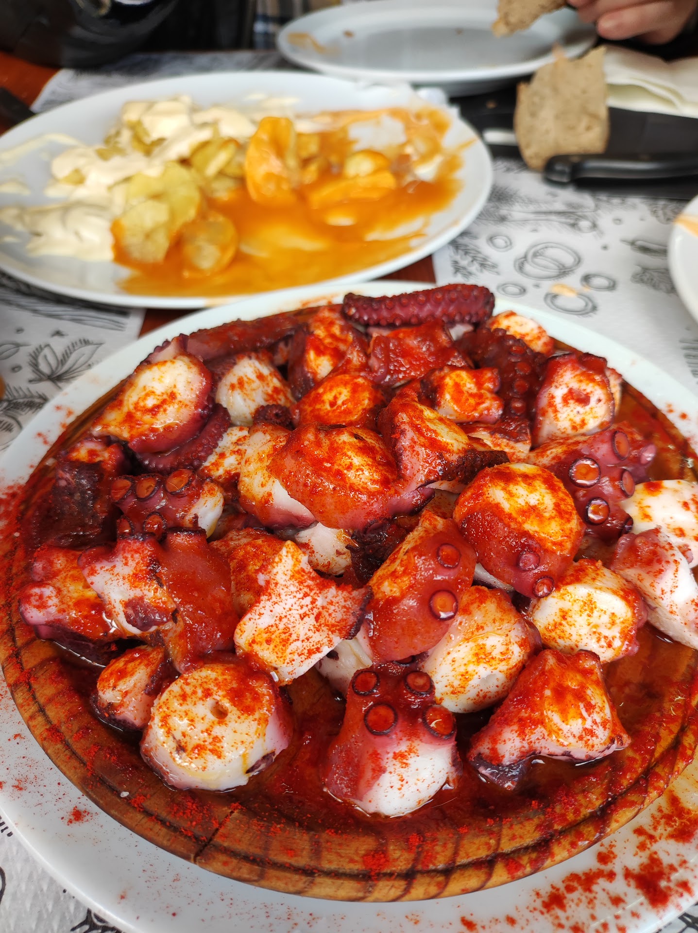 Restaurante en Cacabolos con buen marisco. Llegamos en plena ola de calor de Agosto 2025 (misma fecha que el incendio de Las Medulas) y en la calle hacía 41 grados. Lo peor fue entrar al restaurante y sentir que estaba igual o más caliente que en la calle. El restaurante no estaba acondicionado para refrescar el ambiente o talvez no quisieron sacar los ventiladores porque hacia un calor tremendo. La comida estaba muy sabrosa. Los mejillones eran grandes, frescos y sabrosos. Las vieiras estaban bien pero no tan buenas como los mejillones. El Pulpo estaba muy rico y a buen precio. Los vinos de la carta tenían muy buen precio. Debo decir que las camareras no estaban de muy buen humor porque cuando queríamos pedir tardaban mucho en venir después de que nos veían y era extraño porque solo habían 2 mesas. Se notaba que estaban un poco molestas por algún motivo pero nosotros no teníamos culpa de ello. Una pena porque el restaurante estaba bien pero no me parece correcto atender a los clientes con una molestia...