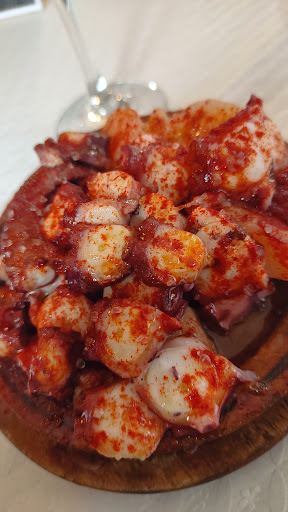 ESPECTACULAR!!!! SIN DUDA ALGUNA ES EL SITIO DONDE COMER PULPO!! Y CALLOS!! Venía yo nublada, como el día....con la esperanza de que comer una de mis comidas favoritas del mundo, me alegrara el día.....pero aquí se pasaron el juego!! Desde que nos sentamos, Caty fue encantadora con nosotros, haciéndonos sentir como en casa...estos niños quieren pan? Dandole a mi mayor un gran trozo de pan del bueno que devoró con todas las ganas mientras llegaba la comida. De entrada el pincho.... Una tapa de pulpo que ya me hizo salivar cosa loca. Vaya pulpo mas bueno!! Tierno, bien cocido, y con el punto de aliño y sal perfecto. Espectacular!! Por supuesto pedimos una ración que me dejó llena a reventar, pero que si me ponen otra, otra me como. Pedimos mejillones con salsa brava casera, deliciosos!! Esa salsita para mojar ...buah...Llegaron los callos....aqui ya, es que se pasaron el juego.... Pueden haber sido los callos mas buenos que he probado en mi vida? Pues no tengo pruebas, pero tampoco dudas. Tremendos. Pero de verdad, buenisimos. La consistencia del caldo, el punto de especias perfecto, los callos....delicioso. Mis niños comieron un plato combinado, donde Caty propuso muy acertadamente cambiar la ensalada por huevo frito. Comieron de lo lindo y bien gustosos ellos también, su filetito de ternera y sus patatitas con huevo. De postre, un flan de huevo casero riquísimo, y cafe del bueno. Situado en una calle peatonal, donde no da el sol, perfecto para que jueguen los crios sin peligro. Muchos gatillos amigos pidiendo comida, el camino de santiago pasa por alli con el ambientillo tan alegre que da ver pasar a los peregrinos a pie y en bici y desearles buen camino. Alex tambien fue encantador con nosotros. En definitiva, no puedo comparar con mas sitios de Cacabelos, pero sin duda alguna volveremos. Si quereis comer muy bien, y barato, y con un trato familiar, sin duda este es el sitio. No aceptan reservas. Muchisimas gracias Caty y Alex, hasta la próxima! Esther, Javi, Javi pequeño y Alvarito ❤️ PD...la pena que no dio tiempo ni de hacer fotos porque devoramos todo nada mas llegar a la...