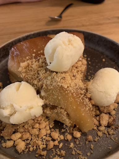 It was a beautiful dinner with great service ! We had the Gazpacho and the cod croquettes for starters ! As a main course we shared the seared tuna steak and the Scallops with a creamy bolets sauce ! The tuna was cooked to perfection and the Mushroom sauce was a delicious combo with the scallops! We then had for dessert the Chouchou (typical Cadaques dessert) which is a croissant filled with cream and the apple fritters! Honestly very creative dishes that made our tunnies smile. The three different wines accompanied my meal thanks to the chef and waiter and owner for making us...
