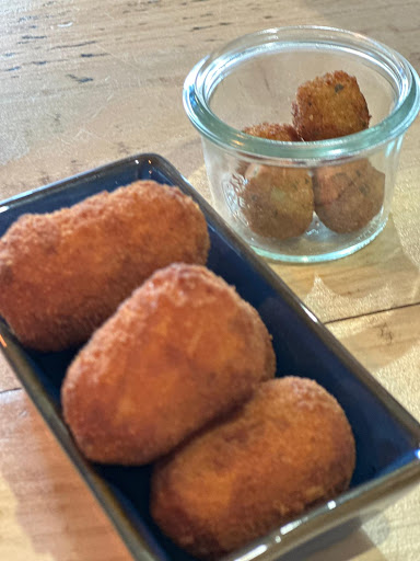 We had: Bread with tomato and smoked sardines, which tasted very delicious. Ceviche from seebass, a nice surprise, the composition of flavours was very well rounded and refreshing. The fried kod, referencing the Dutch kibbeling, which was very subtile and focused on the quality of the fish. An ox stew, made with red wine, very earthy and deep flavours, meat was so tender it was falling apart. A salad with a selfmade mayonnaise, nice combination and presentation.