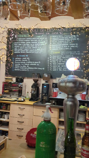 Read moreVisita obligada si estáis por Calaceite. Lo Molí de les Nenes tiene una carta de platillos para compartir que cambia según la disponibilidad diaria de productos locales y orgánicos. En cuanto entras te sientes como en casa, en familia, no solo por la amabilidad y hospitalidad de todo el personal que se preocupa por qué esté cómodo sino por el estilo de compartir platillos que contengan productos tan de casa. Se nota muchísimo el sabor de cada uno de ellos. Se trata de una oferta nada estrafalaria pero a la vez original de combinaciones sencillas de las que nunca has pensado. La decoración del lugar te transporta a una fábula de cuento y hasta el baño está decorado hasta el último detalle. Los quesos que usan complementan los platos de maravilla. El revuelto de longaniza y verduras estaba espectacular. Quizás el plato que no nos gustó tanto fueron los calamares al estilo thai pero creo que es pura preferencia por sabores más mediterráneos. De postres recomendamos el yogur con mermelada de temporada, qué sabor tan natural tenía el yogur. El cheesecake de piña estaba muy rico pero si no os gusta la forma no tradicional de comer tarta de queso (tipo mousse) o sabores muy intensos a queso, no os la recomendamos. Si de lo contrario, os gusta el sabor intenso a queso fuerte en una cheesecake, adelante! El café que es marca Criollo está buenísimo. En definitiva, al salir no sólo te vas con un estómago satisfecho sino también con la convicción de que el producto local y ecológico es salud y sabor. Además, la calidad-precio es de destacar, comimos 3 y salimos a aproximadamente 20 euros por cabeza con 5 platillos compartidos y un...