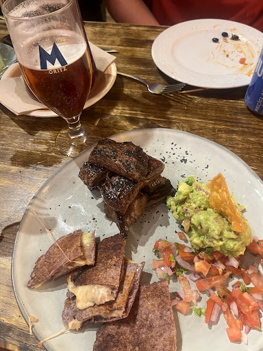 ¡Un auténtico viaje al paladar!😋 Y una auténtica cantina mexicana, tanto por la variedad en su carta como su decoración. Sirven bebidas y platos tradicionales de México, todo casero y elaborado en casa por su chef 👩🏽🍳 nativa. La atención es inmejorable por parte de todos y cada uno de los camarerxs, siempre atentos a que no te falten nada y salga todo a su tiempo, respetando los tuyos. Conocen a la perfección todos los platos y te dan recomendaciones para que puedas probar la verdadera esencia, de ahí que considere que sea un viaje para el paladar. Pedimos para compartir los nachos “la Patrona”, sin duda alguna debes probarlos, tienen una combinación de carnes que… 🤤 Después unas tostadas de Tinga, son de pollo desmenuzado con un “toque” picante 🌶️ (esto de toque es relativo a cada paladar, a mi me pico más de lo que me pensaba, pero estaba delicioso) Luego probamos los tacos de cochinita Pibil, un clásico, esa combinación con la lima siempre es un acierto. Y por último un plato principal arranchera de ternera, el cuál viene con tres fajitas para que tú te armes tu propio taco 🌮 (cabe decir que no he probado entraña tan tierna como esta, espectacular) Y no podía olvidarme de lo mejor, la prueba de fuego de un restaurante, el postre; pero es que QUE POSTRE 🍨 POR DIOS, pedimos el buñuelo con helado de vainilla y dulce de leche, y es que si eres un amante de los postres, DEBES pedirte este, real, fue la guinda del pastel para una cena redonda. Bebimos cerveza y agua fresca de mango 🥭 (otra delicia que acompañó la cena) Y el coste para dos personas fue de 70€ me parece muy buen precio para todo lo que pudimos probar, quedamos llenos. Cabe decir que pedimos dos veces bebida y también postre, lo cual me parece un menú bastante completo y nada caro, he pagado más por menos en otros sitios… Calidad excelente. Gracias por el servicio y la atención recibida, enhorabuena a todos. 🥰♥️ ¡Volveremos y...