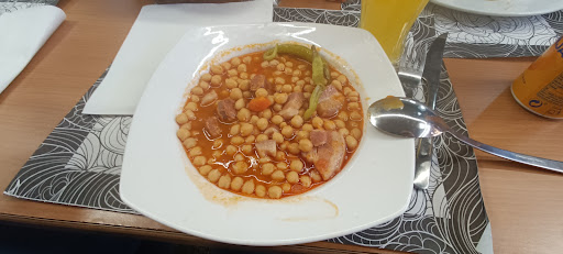 Esta dentro del centro comercial Arca, El local está bien, puedes comer el menú del día o creo que también bocadillos. El primer plató era arroz negro con marisco, un poco pasado pero al mismo tiempo te encontrabas algunos granos de arroz un poco duros. La fideua con sepia estaba bien sin más, la sepia estaba buena blandita. De segundo pimientos rellenos de ternera en salsa de piquillo, muy buenos, lo recomiendo, muy suaves y la salsa riquísima pero el otro segundo de mi acompañante era redondo de ternera con salsa de setas y acompañado de patatas fritas y champiñones estaba duro, le faltaba un poco de cocción al redondo, porque costaba masticarlo, mira que redondo de ternera son finos los filetes, pero no era fácil de comer, muy mal cocinado, estaba muy duroooo. Y los postres muy buenos, tienes variedad de tartas, pero yo elegi el helado de turrón y estaba exquisito y una tarrina de helado de chocolate y nata muy bueno . Y luego para beber agua, vino de Rioja, o caña de cerveza. Si no quiere postre, puedes tomar café. En resumidas cuentas los pimientos rellenos de ternera y los...