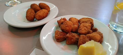 El servicio ha sido atento, y la terracita con las lámparas de calor se agradece mucho con el frío. La comida estaba muy buena, especialmente el cazón adobado, aunque es cierto que esperaba más cantidad (culpa mía, porque en ningún momento pone el tamaño del plato y estoy acostumbrado a las raciones del sur; podría decirse que tiene el tamaño de una tapa). Aún así ya digo que por el sabor compensa. Luego las croquetas son caseras y también estaban ricas. Pedimos además el bocadillo n°10, de tortilla de chorizo, quedo, cebolla caramelizada y tomate untado. Una maravilla. Hemos probado otros bocadillos de aquí pero ese nos ha encantado. Por lo tanto, dos bebidas, el cazón, la media de croquetas y el bocadillo nos ha costado casi 25€. El precio ligeramente más elevado que en otros sitios pero, para mí, compensado con la calidad del producto.