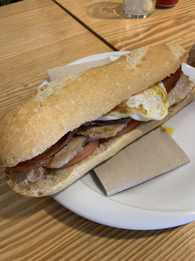 This is a busy bar with a small restaurant. It seems popular with the local. We had nice lunch with daily menu, I had a white bean soup and pork skewers and very nice panna cotta for dessert. The restaurant is clean, service is quick and the food is nothing special but good value for money. We spent €31 for daily 3 courses menu for 2 and 2 coffees. It included a bottle of red wine and a big...