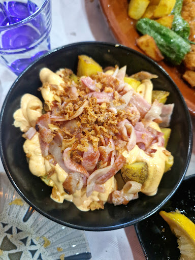 Después de un puente lleno de emociones y un domingo en el que nos cultivamos con las distintas representaciones del arte mudéjar de la zona, decidimos dirigirnos a Calatayud a tomar el aperitivo y comer así que, finalmente, fuimos a “La Taberna”, el cual se encuentra en una céntrica plaza de la localidad. Era el restaurante más concurrido de la zona y parecía que pintaban bastos para nosotros pero, después de pedir unos refrigerios, el tabernero nos dijo que había tres mesas delante de la nuestra y que si queríamos esperar. La verdad es que fue muy rápido y no tuvimos que esperar mucho, apenas me dio tiempo a acabar la caña que me había pedido. Teníamos mucho hambre así que pedimos unas tapas y un cachopo para compartir. La camarera se portó con nosotros súper bien en todo momento, de hecho, nos puso una tapa de gabardinas para ir abriendo boca mientras esperábamos a la comida, ¡estaban muy buenas! Pedimos las croquetas de rabo de toro las cuales estaban muy crujientes y jugosas. También unas patatas “taberneras” las cuales eran patatas cocidas en taquitos y después fritas, con tiras de baicon, cebolla crujiente y una salsa que estaba realmente rica. Después llegaron los calamares, fueron toda una sorpresa porque el rebozado estaba muy bien ya que era ligero y además el calamar en sí estaba muy bueno y fresco. Y, por último, el cachopo estaba delicioso, muy jugoso y la carne súper tierna. De precio salió todo muy bien así que sin lugar a dudas repetiría en este...