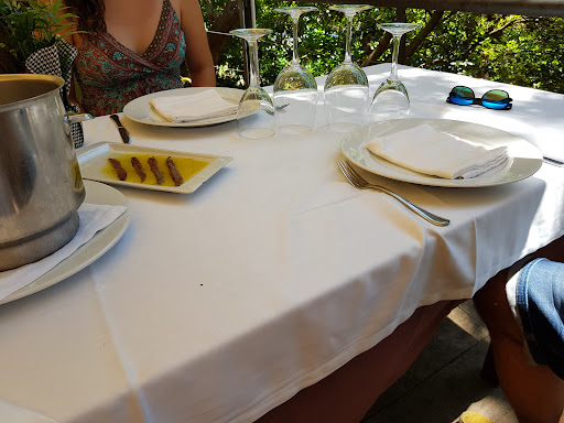 En cuanto al restaurante, teníamos reserva y nos quedamos en la terraza. Está rodeada de verde por lo que le da un ambiente muy chulo. Las mesas son amplias y cómodas, estuvimos muy agusto. El servicio es muy amable y atento. Sirven una tapita y pan con tomate nada más sentarte. En cuanto a la carta, no me gustó que pone "pescado de lonja" no especifican los tipos que disponen ni tampoco el precio. Has de preguntar. Pedimos un suquet de peix y estaba muy rico aunque para nuestro gusto le faltaba un poco más de sabor, el pescado está muy tierno y jugoso pero por poner alguna pega, un poco aguado. De postre pedimos tiramisú, que estaba delicioso!