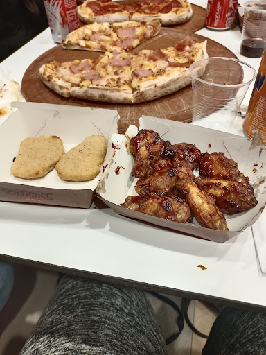 Buenas noches hoy estuve con mi familia comiendo la verdad fue fatal la atención muy mala un despotismo total para atender al cliente y yo no soy de que me hagan la pelota si no que me atiendan normal como tiene que ser pedí alitas de pollo a la bbq la verdad no tenían sabor a nada unas cuantas gotas de salsa nada más cómo les mostrare en la foto me las pusieron en una cajita junto con las nugues de pollo hay que darle un poco de educación y que aprenda a tener un poco más de cortesía y empatía con vosotros k cliente la persona que nos atendió que es una chica bueno pondré la foto para que vean cómo nos pusieron yo lo si no mucho pero no volveré más creo yo siempre pido a domicilio la pizza pero el peor error es haber ido a comer hay me sentí mal tratado como que le molestó que fuéramos pero creo yo que es su trabajo yo también trabajo de cara al público y trato bien a las personas pero bueno cada...