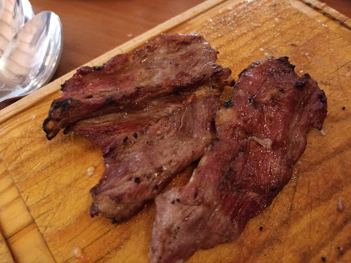 Mesón especializado en carnes a la brasa y productos de la tierra. El camarero es atento y amable.