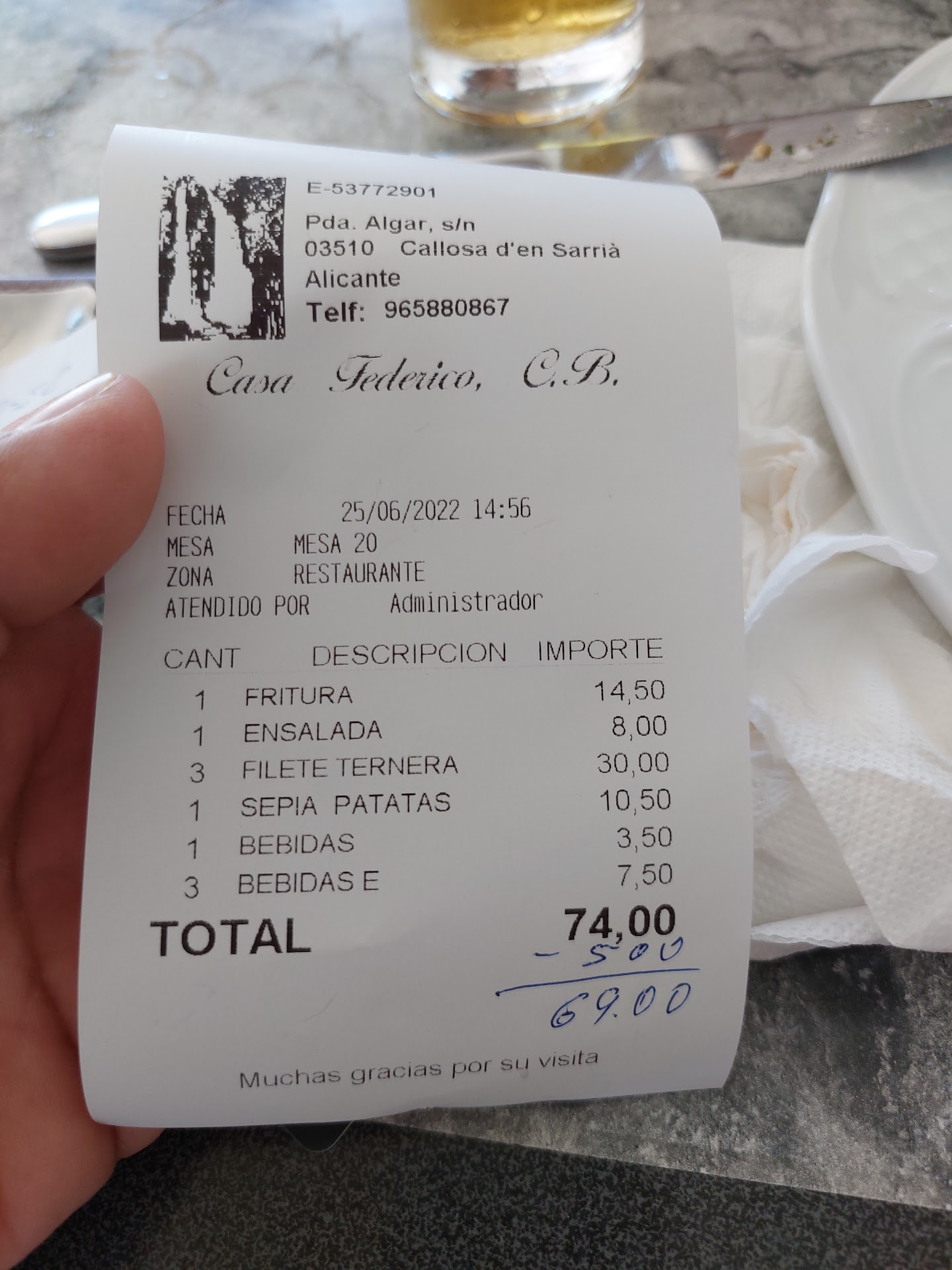 Read moreWe gave this restaurant a 3 star only because it was a life saver. All other restaurants were closed in this area. So there went the first star. We were visiting Fonts de l'Algar. The Staff was welcoming then told us the kitchen was closing, we needed to hurry and order from one particular menu. 'School food' we ate. Nothing spanish here at this time (siesta). Fries, hamburgers, croquetas jamon which was not ham...maybe mashed potatoes. The food was not ok! We sat outside. There is indoor seating with air conditioning, clean, spacious with clean toilets, that was where the second star went.The bill was VERY pricey for 'school food'. Good this place was open to fill that space in our tummies. Thats where the third star went. YUP! Just because they were open. Thank you for being open!!! NOT...
