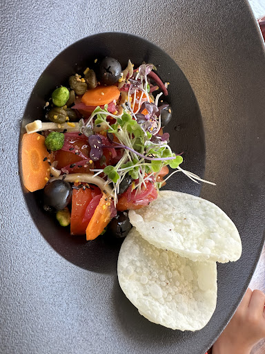 We ordered the eggplant taco appetizer and it was delicious. The tortilla was likely prepared in house. It was thicker than a normal corn tortilla but had this awesome consistency. For some odd reason, the wait staff told us when ordering that the order came with 3 tacos. However, when we got the bill, we were charged 3 times. Our server had gone off shift, and the replacement said no, an order is just one taco. While the tacos were great, I don't think I would spend nearly 30 euros for 3 tacos.