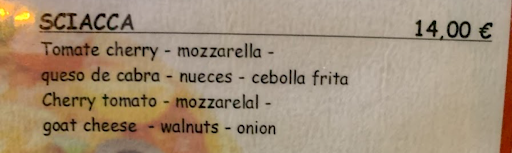 Read morePongo 1 estrella porque vinimos hace unos días y el trato fue exquisito. Nos atendió Carlo y salimos encantados. Como nos gustó tanto, decidimos repetir antes de terminar las vacaciones. Esta vez había una señora sirviendo las mesas, no sé el nombre. Pedimos un par con ali-oli, una pizza sciacca y una agrigento. El pan nos lo trajeron enseguida, pero sin mantel ni bebidas. El pan era del día anterior por lo menos, pero el ali-oli era decente. Terminamos todo el pan sin las bebidas ni el mantel. Tuve que entrar y recordarle a la camarera que se le habían olvidado, a lo que ni siquiera se disculpó y me dijo que ahora iba.