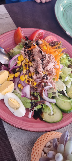 We went for the menú del día (€18.90 p.p.) for five people, which included three shared starters: – Ensalada de la huerta: colorful and fresh, topped with tuna, egg, corn, and (of course) balsamic reduction. – Chopitos and calamar a la romana: well-fried and flavorful. The calamar had a light flour coating — not heavy batter — and the chopitos were crispy, though the portion felt more tapa-sized than family-style.