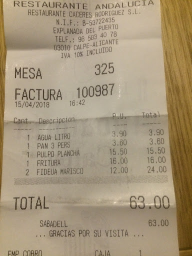 The food was amazing, on weekdays you can take a cheap menu which contains a starter and a main course. The fried mussels and the fish soup are highly recommended as well the black ink squid paella. Take care that for the paellas you need atleast two people to order it.