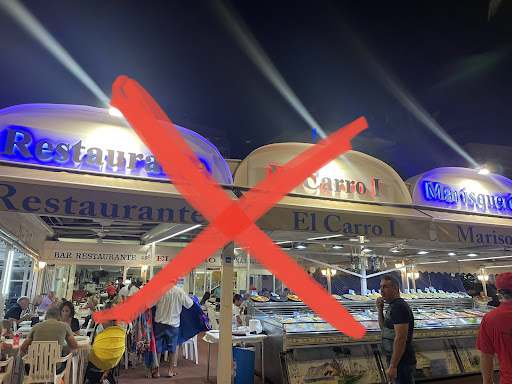 Read morePongo un 1, porque no se puede poner menos!! Habíamos reservado, aún así, cuando llegamos la mesa no estaba preparada y nos sentaron en una mesa sucia. Tras un rato de espera, llega la hora de pedir. Eramos un grupo de 7 personas y queríamos 2 tipos de arroz distintos, nos dijeron que solo una paellera por mesa. Entiendo que el arroz sea mínimo para 2 personas, pero si somos 7, porq no podemos pedir, por ejemplo, un arroz para 3 y otro para 4??! No hay explicación. Después de un rato intentando razonar con el camarero, su respuesta fue que hay muchos restaurantes y que si queríamos nos fuésemos a otro, pero que esa era su norma... increíble!! Vamos a pagar y no podemos comer lo que queramos?? Y si en vez de en una mesa, hubiéramos estado en 2, si podíamos pedir 2 arroces distintos??? En fin, dado que entre unas cosas y otras eran las 4 de la tarde, nos quedamos... Aunque si hubiese dependido sólo de mi, habría aceptado la amable invitación del camarero y me habría ido aunque fuera al Burguer King y aseguro que habríamos comido mejor!!! Nos decidimos (obligados a elegir solo un arroz), por la paella de marisco. De pena. Tenía colorante como para teñir el Mediterráneo, pero el sabor a marisco no estaba por ninguna parte. Creo que en esa cocina conocen las pastillas de Avecrem, pero no saben lo que es un fumet de pescado...!! Lástima que los turistas se vayan pensando que eso es una paella, pero a los demás que no nos tomen el pelo. Desde luego yo, una y no más!! Si no quieres perder tiempo y dinero, ahórrate entrar aquí. Cómo dijo el "simpático" camarero hay otros muchos restaurantes que sin duda son una opción...