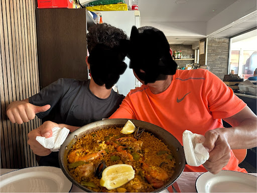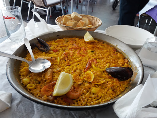 Read moreGrata sorpresa la que nos llevamos mi familia y yo al comer en este restaurante. Pedimos menú del día, dependiendo del segundo que elijas tienen un precio u otro y van desde los 14.50€ del menú con lubina, pasando por el de 16€ con paella, hasta los 18.50€ que es el más caro y que es con entrecot, todos con pan bebida y postre. Eran las 14:00 hrs de un día de diario de Junio y ya había cola, por lo que recomiendo o llegar prontito o directamente reservar. Pedimos cuatro menús y todo muy bueno, mejillones, ensaladilla rusa (muy buena pero escasa), ensalada… Pero lo que se llevó la palma fue la paella, hay que pedir mínimo para dos, cosa que en principio no entendimos pero que luego al ver la paella tenía su explicación y es que resulta que las paellas las hacen por mesas, normalmente en casi cualquier restaurante la paella es un plato de paella y punto, aquí no, aquí te hacen tu paella aparte, eso sí mínimo dos, y os aseguro que merece muy mucho la pena, muy sabrosa, en su punto, arroz durito pero sabroso, y con sus buenos trozos de pollo, sus gambas, langostinos, mejillones.. Lo dicho la paella nos pareció de 10 para ser de menú, pero la sorpresa llegó con el postre, pedimos tarta de queso y esto ya fue la guinda del pastel, a los amantes de la tarta de queso os pido encarecidamente que la pidáis, yo soy muy de tarta de queso y esta es sino la mejor de entre las tres mejores que jamás he probado, y encima porciones generosas, brutal y deliciosa. También está bastante bien el postre pijama, es generoso con su flan, fruta, nata y helado. Lo dicho, restaurante en primera línea de mar a tener muy en cuenta, siguen haciendo las cosas como debe ser y no mal y rápido como suelen hacer muchos restaurantes de...