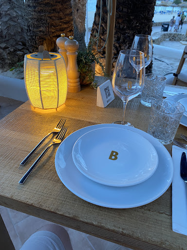 A real disappointment, in four dimensions: Location: Make no mistake, you will be sitting on the terrace of a pimped 4-star hotel in one of the less attractive areas of SW Mallorca. Worse, you'll be sitting on ugly 90s-style brown tiles. Someone had the clever idea though of putting IKEA+ beach-style furniture onto it and fly a few funny Hawaiian lamps, to call it a "Beach Club". We could not even see the beach when standing up from our table. Atmosphere: If you like being surrounded by people with the urge to take no less than one picture of themselves per minute, this is your place. We sure did not enjoy the atmosphere it creates. In all fairness, the music was good - until the DJ quit at 22.30h, disappointingly. Food: Mixed, from decent lobster paella to very poor squid. However, grossly overpriced - the (sub-par) tuna tartar came at EUR 33, where even in Port d'Andratx you'd pay maybe 24. Service: Understaffed, as to be expected, but also quite underwhelming - long wait times, half-full bottles taken away, not a sign of a reaction to our criticism of the food.