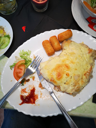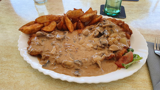 Desde hace años es un escalope excepcional; todavía hay restaurantes que saben preparar un escalope de forma muy correcta. Carne fresca desde la capa superior con un empanizado crujiente que no se empapa ni siquiera con la salsa (sin empanizado de copos de maíz). Carne tierna y con un bocado crujiente hasta el final. Un placer que llevo años buscando. ¡¡¡Gracias, todavía puedes hacer escalope como el de la abuela!!! El restaurante está muy bien decorado y es acogedor por dentro y el personal es tan amable que es simplemente perfecto. Si realmente te gustan los buenos escalopes deberías visitar este restaurante. Los precios son muy humanos. Sin embargo, se recomienda pedir mesa por teléfono, ya que allí se habla alemán y español....