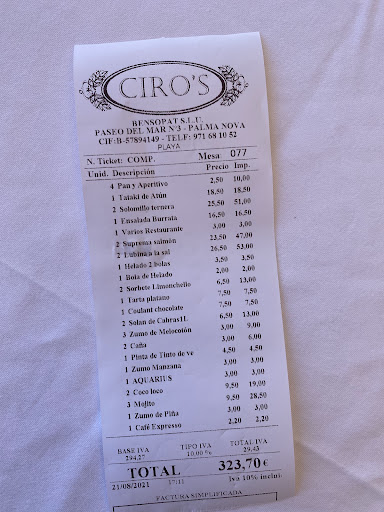Read moreNada recomendable. Peor que un chiringuito malo de playa...nos hemos sentido engañados. Alioli de color rosa y sabor estaño, croquetas de bogavante diminutas y crocantis por 16.50€ Hemos pedido un arroz negro de una carta, y traen lo que llaman paella mulata, vamos un invento, un arroz que no era negro, con sepia, calamar, gambas, mejillones, judías y guisantes duros (el típico arroz negro de algún país raro, porque de España no) Resulta que en una de las 3 cartas que hay pone paella mulata.... anda que el camarero nos dice algo cuando hemos pedido un arroz Negro. El trato pésimo, nos piden que no nos sentemos en las mesas que están más cerca del mar.... para que los extranjeros se sienten ahí, como somos de Mallorca ya lo tenemos muy visto no?? Patético. Y para colmo el camarero nos trae la cuenta diciendo "toma amigo" en un restaurante que no es nada barato, pero que educación es esa??.... Mari esto ya no es lo mismo sin ti. Queríamos comer bien en frente de la playa y ha sido una total decepción. Nada recomendable....