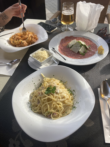 Als die Hauptspeisen kamen, waren wir geteilter Meinung. 2 von 3 unserer Familie empfanden die Pasta als nichts besonderes - es fehlte etwas die Tiefe im Gericht, der "Pfiff". Allesamt war das Gericht etwas schwach abgeschmeckt. (Menge an Sauce/Öl ist eine subjektive Präferenz). Wir hatten die Pasta einmal in der hausgemachten Variante mit Tagliatelle, allerdings würden wir davon in Zukunft absehen. Diese haben sich nicht von herausragender Qualität ausgezeichnet. Darüber hinaus klebten diese sehr zusammen.