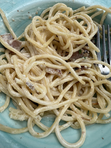 As for the food, it was mediocre at best. I ordered pasta carbonara, which turned out to be nothing like the traditional dish. It was made with cream (which is not how real carbonara is prepared), and there were no eggs at all — just a heavy cream sauce that didn’t taste good.