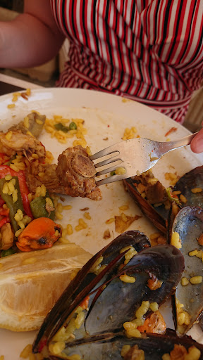We started the visit to the establishment by waiting in front of the restaurant, patiently waiting for a server or other staff to acknowledge our precense. A while later we got tired of waiting in the smoking hot sun that we just walked straight in and went directly to a table. Once at the table, a waiter made a slight wave at me, sort of acknowledging us. After a 15 minute wait at the table we ordered two glasses of orange juice. The waiter asked if we wanted freshky pressed orange juice and naturally we said yes. After another 10 minute wait we finally received our drinks. They tasted nothing like fresh orange juice. They pretty much tasted like rotten oranges smell. Our suspected that the orange juice came from concentrate and wasn't even blended properly. TERRIBLE. We then ordered a Mixed Paella for two. We had to wait for approximatly 30-40 minutes with some fairly low expectations. Not even with low expectations did it taste, in any way, good. The shrimps still had all the shell on them and didn't taste anything but frozen. The meat consisted of 70% bones, 20% fat and 10% meat. Making it impossible to eat. Some of the rice wasn't cooked properly and was still hard. I didn't want to taste the clams with the fear of getting sick.