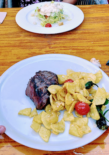 Fantastic place to go with our little one 17 months, I had steak file medium rare and it was fantastic ! The photo, it's a big big plate like a big pizza plate. The misses ordered a Ceasar salad and she was a bit worried but here words "The best she ever had".