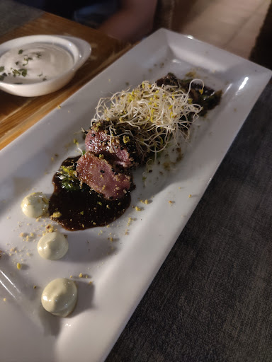 Wonderful evening with wonderful local wines. I drank the local red very soft and agreeable on the palate. We had the local white as well very good. As a starter we had a salad with avocado and feta with tomatoes and lettuce very fresh and delicious. As a main we share the surf and turf took the stake medium was perfectly made and was heavenly. The lobster was beautiful and the waiter instructed us how to eat it properly and was amazing ! Then as desert we had a special variation of flan they made ewixj was out of this world and came with the best strawberry ice cream (everything it touched was magic) the second desert was a local bread made into a French toast with a caramel „roof“ - also delicious . The service was fabulous, local and happy and funny. Great experience! Can only...