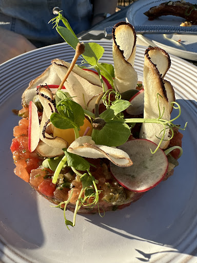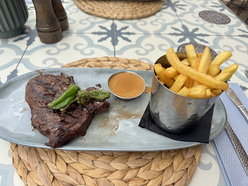 Read moreWe absolutely loved this place. The roof top bar gives it such a lovely feel as you look out over the Mediterranean as the sun went down and the trees lit up purple. The food was unreal, my wife had a fillet steak with pepper corn sauce which, in here words was up there in the top 5 steaks she has ever had! Melted in her mouth. It came with crispy onions green peppers ,vine tomatoes and she added truffle parmesan fries to finish the dish. I had the steak and mushroom pasta which was delicious. Desert we had the cookie dough with a pink .marshmallow and peanut butter ice cream, this was unreal, a taste sensation in our mouthes. We washed all this down with a reasonably priced bottle of rose wine. You normally have a little time slot of around 1.5 hours but we were enjoying the ambience so much we asked a member of staff with a blue shirt. (I give this description of him because i didn't catch his name. He was lovely a really friendly guy who made us feel so welcome and deserved little recognition) if we could stay for a little longer and stay for a cocktail. The whole bill came to €130 or £113 sterling which for what we had and the atmosphere was very reasonable. If you are thinking of coming here I'd say 100% do...